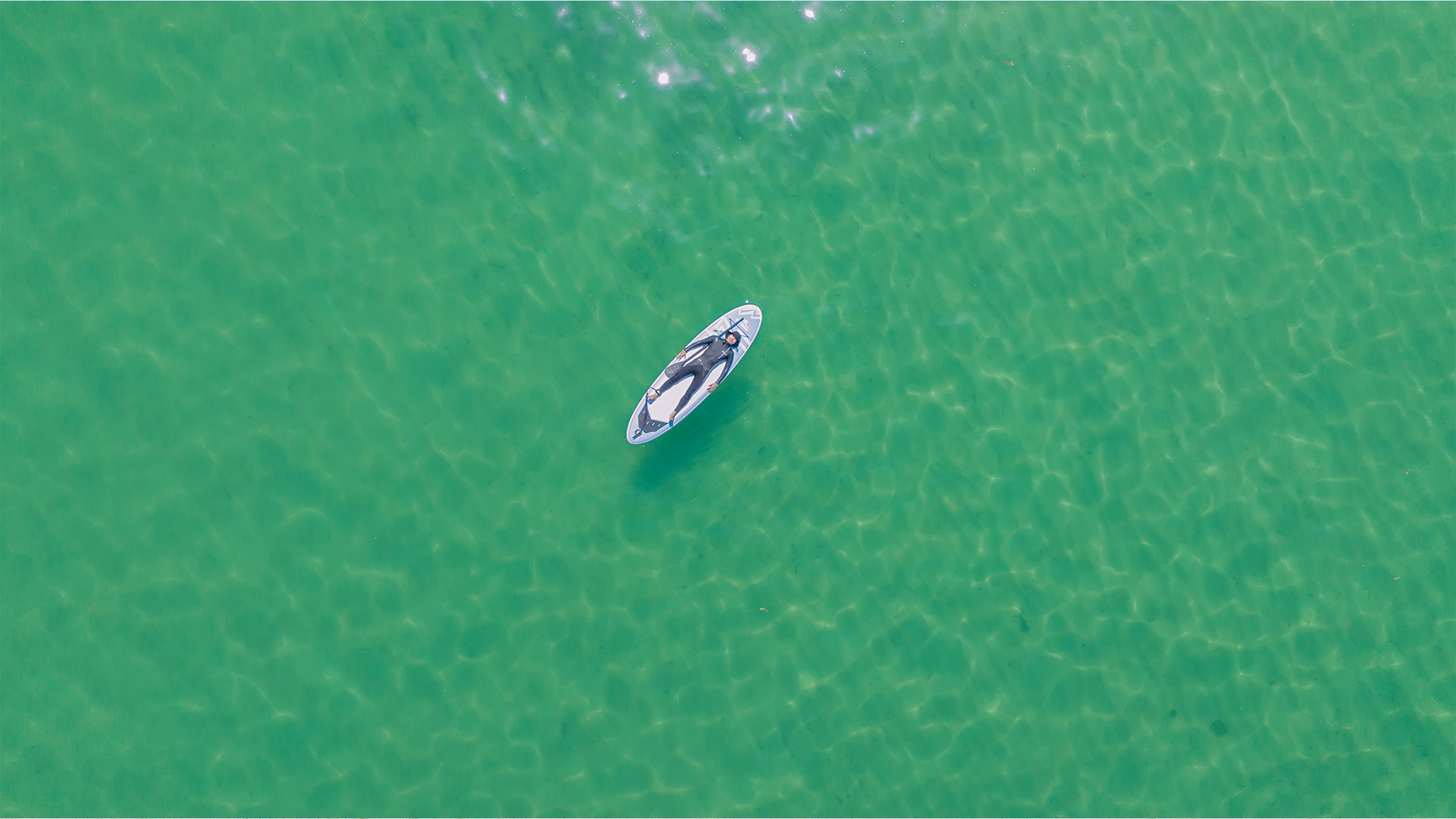 ドローンによる真上からの空撮により、海の広がりと船のフォルムを一体的に捉えた一枚。人物をあえて小さく配置することで、自然のスケール感と非日常的な開放感を強調し、船という商品の魅力と使用シーンを直感的に伝えています。地上からは表現できない視点が、ブランドイメージとストーリー性を高める空撮ならではの表現です。