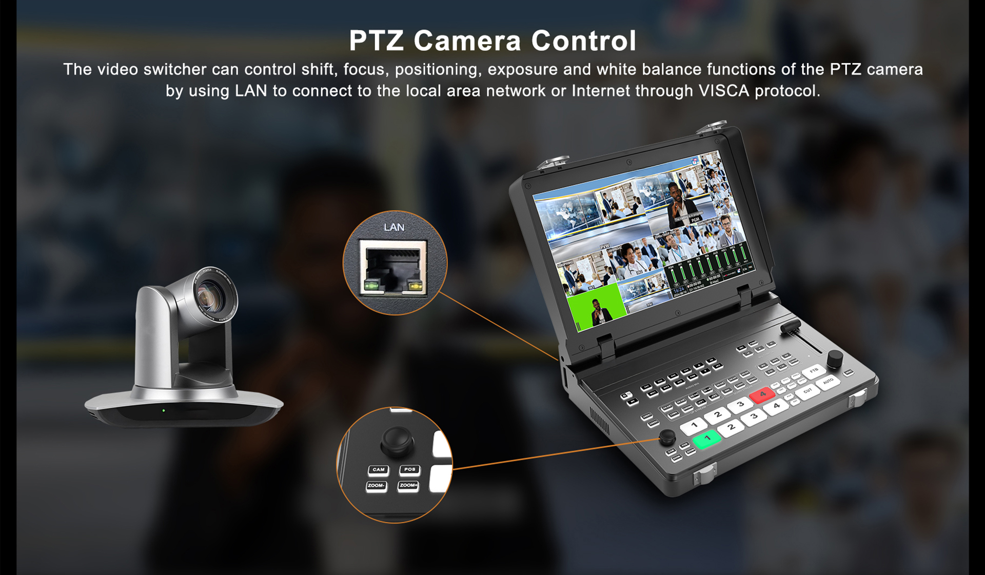 ● PTZカメラ一体型コントロール、簡単操作