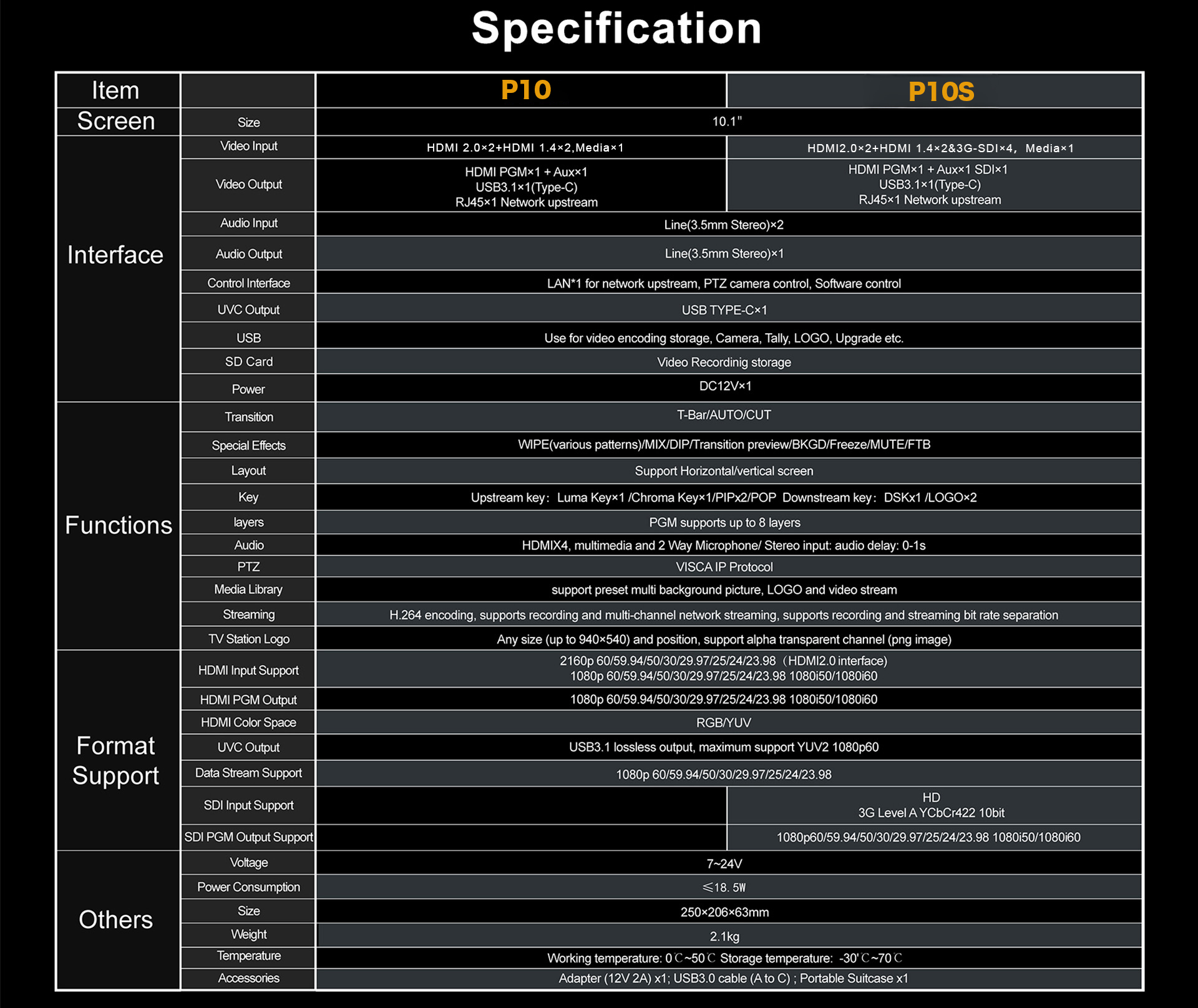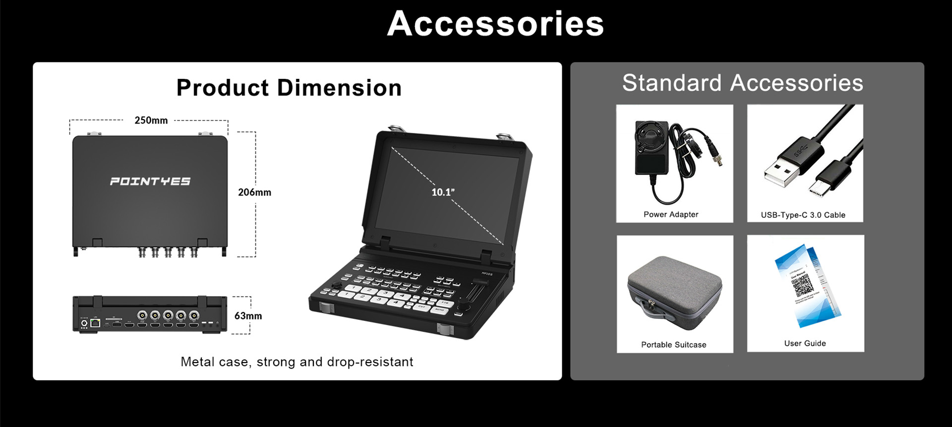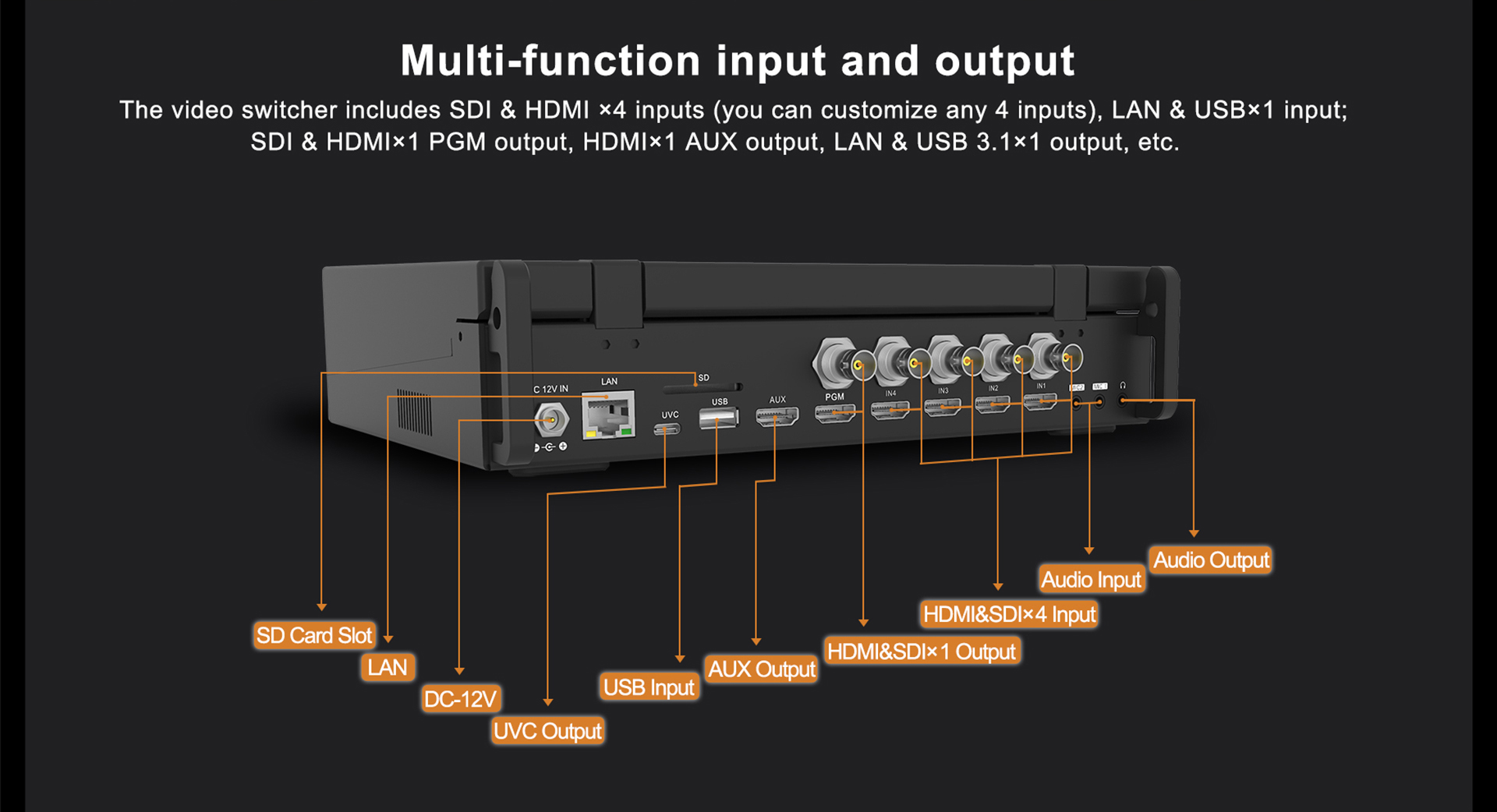 ● 5チャンネル 10.1インチ 4K@60入力ビデオスイッチャー